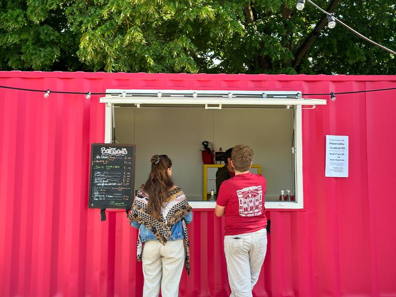 On peut s'installer au bar-terrasse de Cirque-Théâtre Quartier d'été pour boire un verre ou grignoter, en profitant de l'apéro-musical ou du concert du soir. Les food-trucks présents chaque week-end proposent une variété de menus à déguster sur place ou à emporter.
